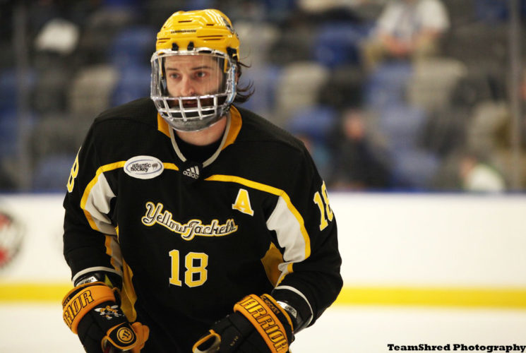 SUNY Brockport Golden Eagles‘ senior defenseman Jordan Rosenbaum(6) signed a couple of FPHL contract before being loaned up and scored a few SPHL points, but […]