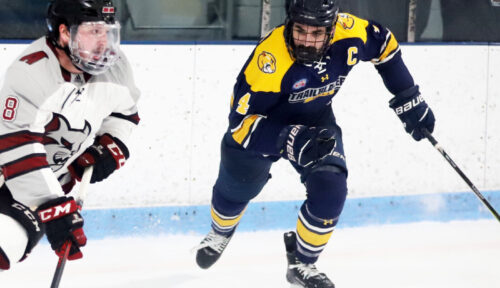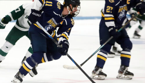 Franklin Pierce University Ravens‘ senior right wing Austin Pick(47) looks to be setting up some college best scoring with 1 goal and 8 assists in […]