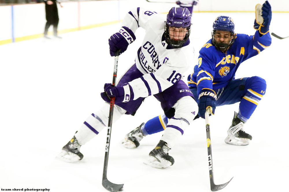 Curry College Colonels‘ graduate defenseman Billy Roche(18) signed upon graduation with Roanoke Rail Yard Dawgs, scoring a 1st SPHL goal for himself in 3 games […]