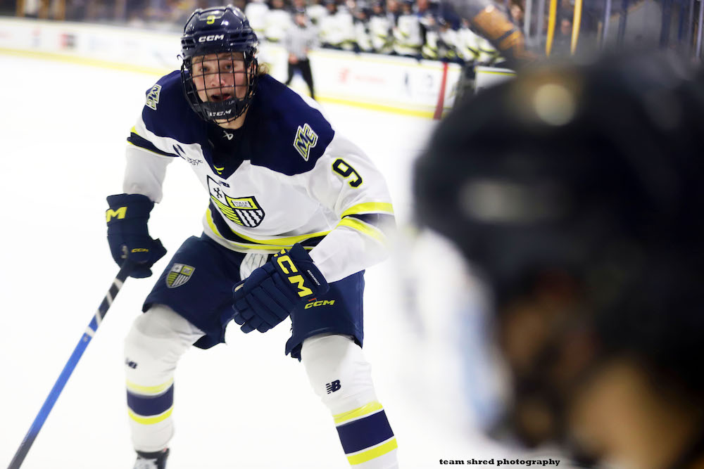 Merrimack College Warriors‘ sophomore left wing Jack Richard(9) gets back to action after missing last season with injury and has 2 goals and 1 assist […]