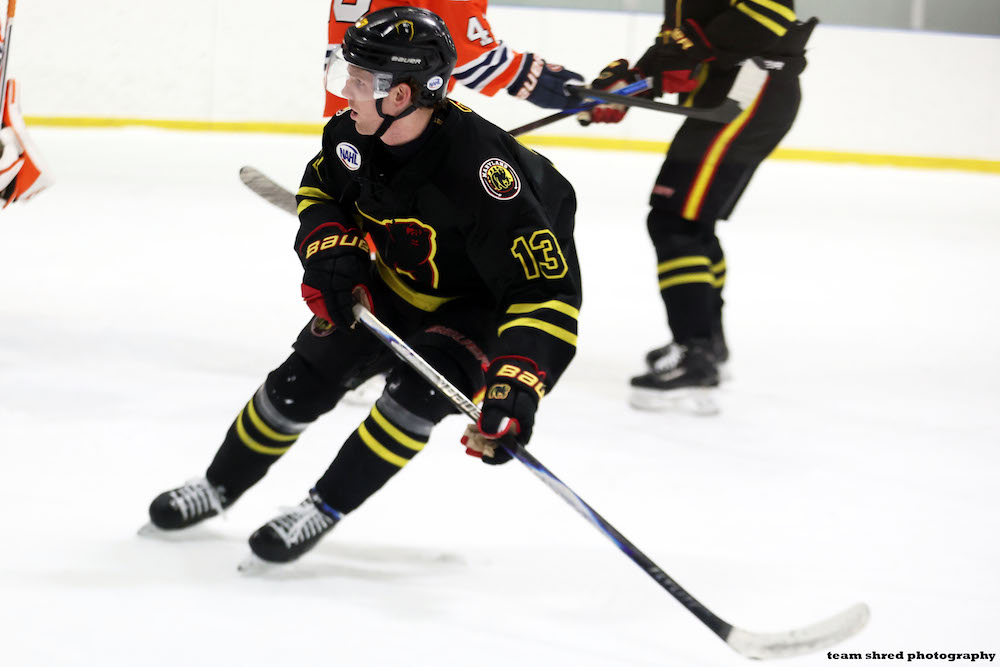 Maryland Black Bears‘ 2nd year left wing Trey Hinton(13) scores a new junior best 12 goals and 24 assists in 44 NAHL games this season, […]