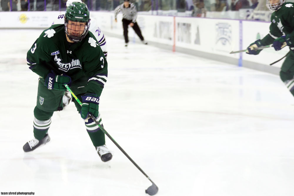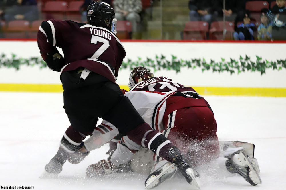 Stonehill College Skyhawks‘ freshman right wing Carter Rapalje(34) came away with an almost natural hat trick in a big away game 8-2 win over a […]