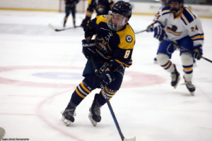 UMASS Dartmouth Corsairs‘ sophomore left wing Tyler Stewart(8) finished 2023/2024 with a team leading 17 goals and 3rd best and new high 27 points in 25 games.
