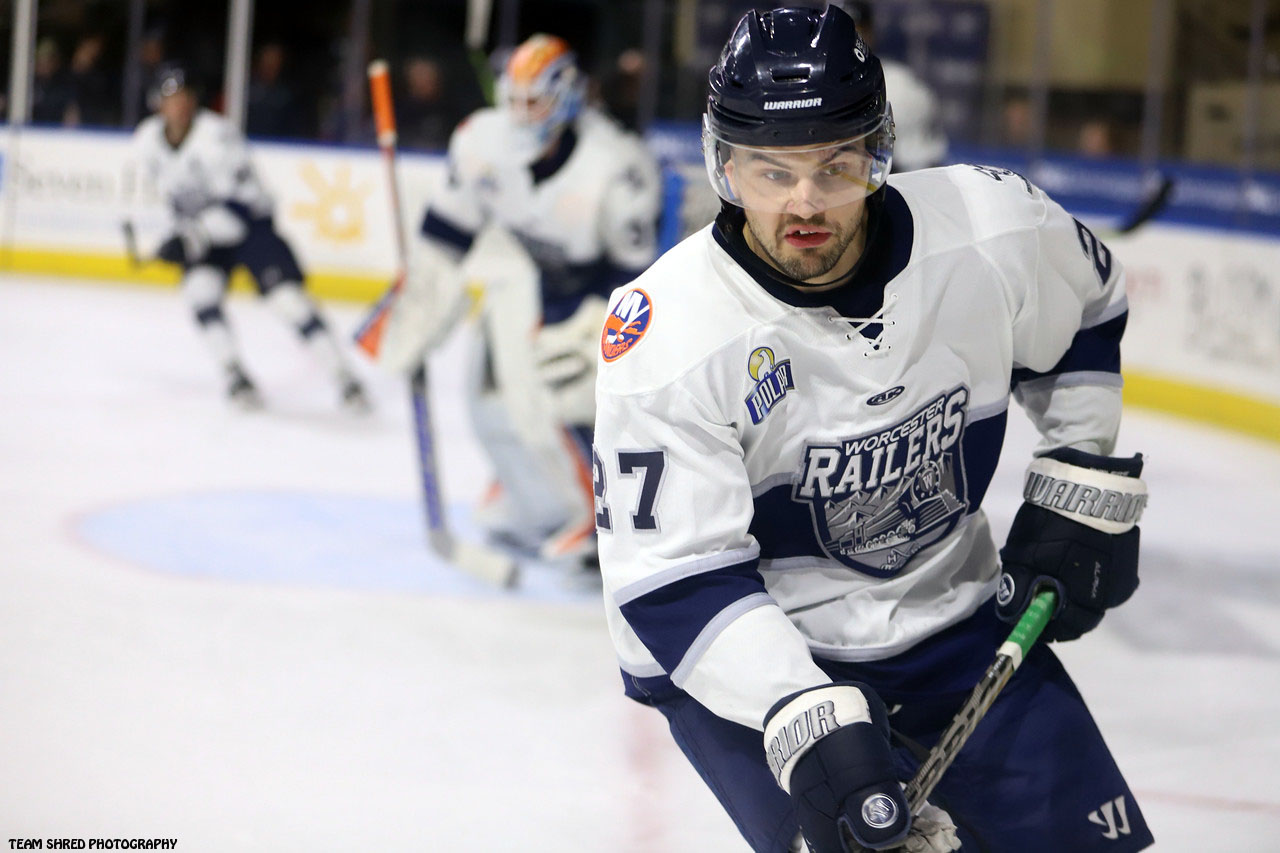 He arrived after four super strong (47-59 in 118 ECAC games) years, including as senior captain, from Brown University Bears to Albany Devils and immediately picked up 3 goals and 9 assists in 11 AHL games on an ato.