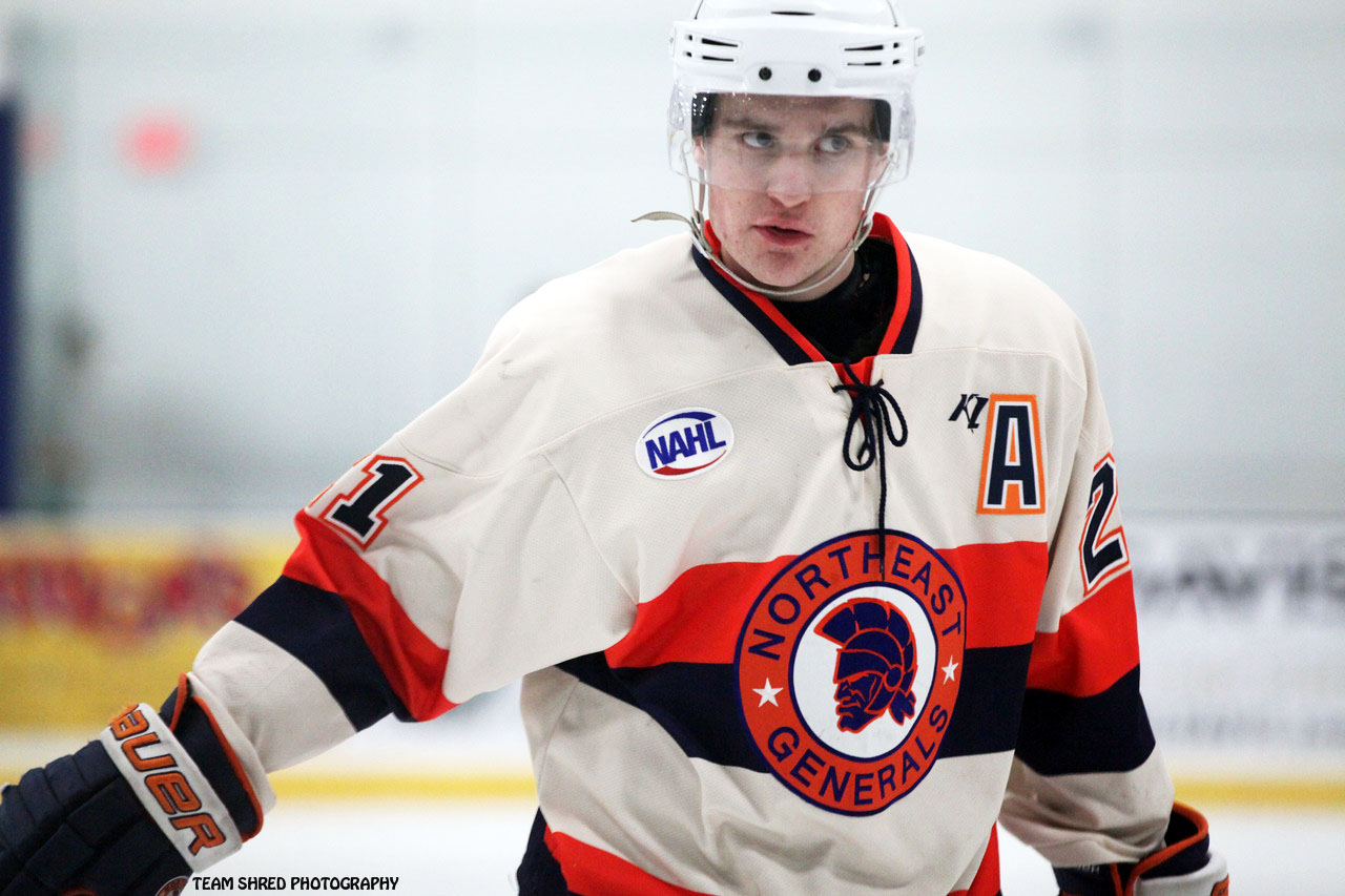 He played 3 years of NAHL junior hockey for Northeast Generals, scoring a best 16 goals and 15 assists in his 3rd frame.