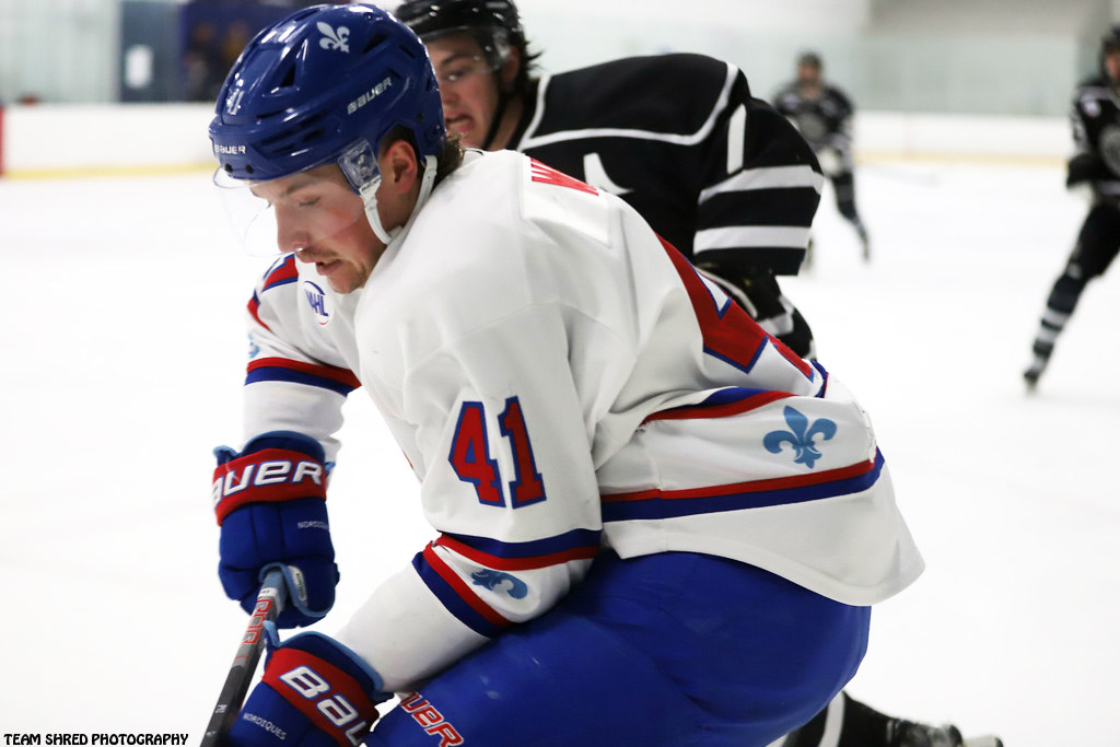 The 5’10” 179 lbs. forward came over quickly, playing Northwood School USHS-Prep, then 2 junior seasons split between NAHL and USHL.