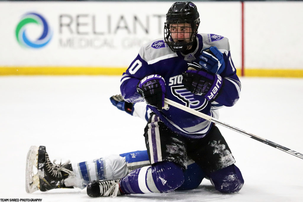Stonehill College Skyhawks‘ senior left wing Brendan Nehmer(10) signs a 1st pro contract to join EG Diez-Limburg Rockets for 2023/2024.