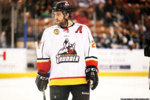 Undrafted 13th year center Peter MacArthur(16) hangs up the skates after another good season with close-to-home Clifton Park, NY, Adirondack Thunder to become their fourth head coach for 2022/2023.