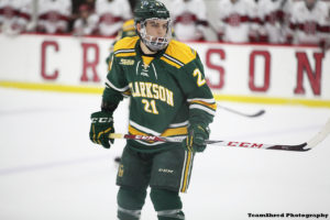 The former Clarkson University Golden Knights‘ assistant captain as a senior twice scored 20 points in Atlantic Hockey play.