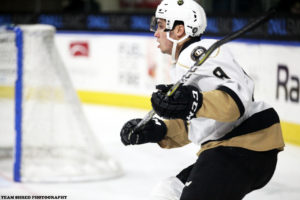5th year center Marcus Power(9) leaves for a 2nd time after skating his 3rd season with the only local to home North American team he’s ever signed with, Newfoundland Growlers, who he also won the 2019 Kelly Cup Championship.