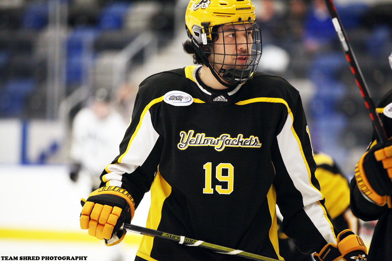 American International College Yellowjackets‘ graduate, left wing Elijiah Barriga(19) signs a 1st pro deal with Dundee Stars of the EIHL for 2022/2023 after putting up a college career best 15 assists and 24 points last season.