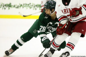 The 6’3″ 190 lbs. blue liner scored a 2nd 8 goal season and added 19 assists, which equaled what he did as a freshman, but was down from the 26 he recorded as a sophomore and likely got him extra noticed.