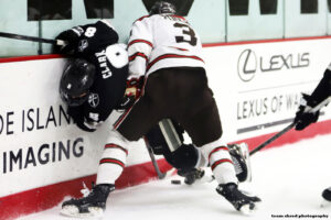 Providence College Friars‘ graduate center Logan Will(62) scored a college best 8 goals and 16 assists in his extra frame.