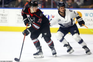 3rd year defenseman Tristan Thompson(72) is looking good in his beginnings with new club Adirondack Thunder.