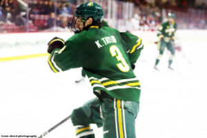 Clarkson University Golden Knights‘ graduate, captain defenseman Kaelan Taylor(5) signs a 1st pro deal with Tahoe Knight Monsters, which he extends to a full 1-year ECHL contract for his rookie frame, 2025/2026.