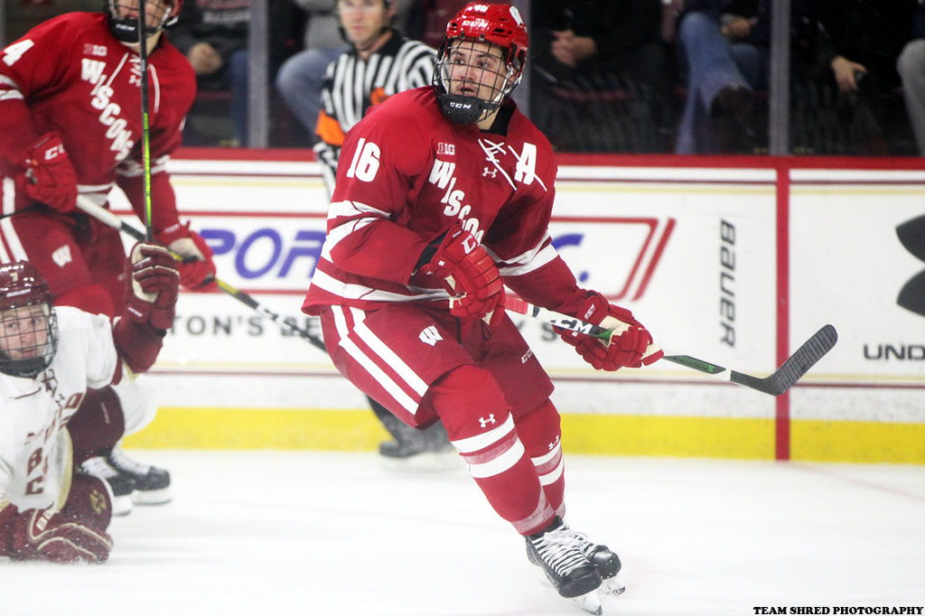 University Of Wisconsin Badgers‘ 5th year, graduate left wing, captain Tarek Baker(16) signs a 1st pro deal with South Carolina Stingrays for 2022/2023.