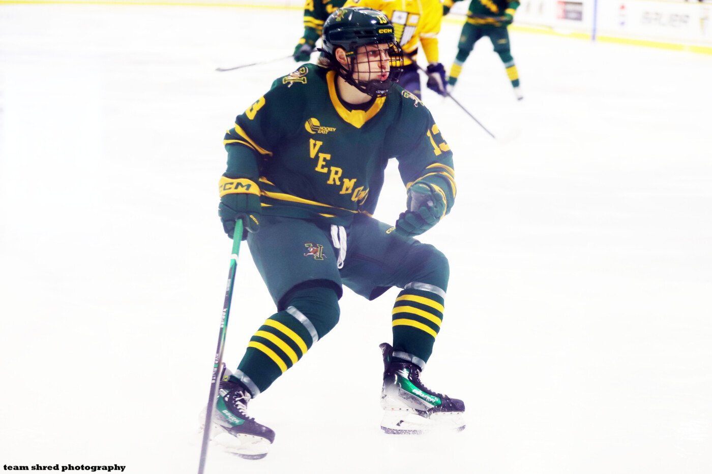 University Of Vermont Catamounts‘ Russian-born, senior right wing Timofei Spitserov(18) signs an ato with Norfolk Admirals to get his pro game on.