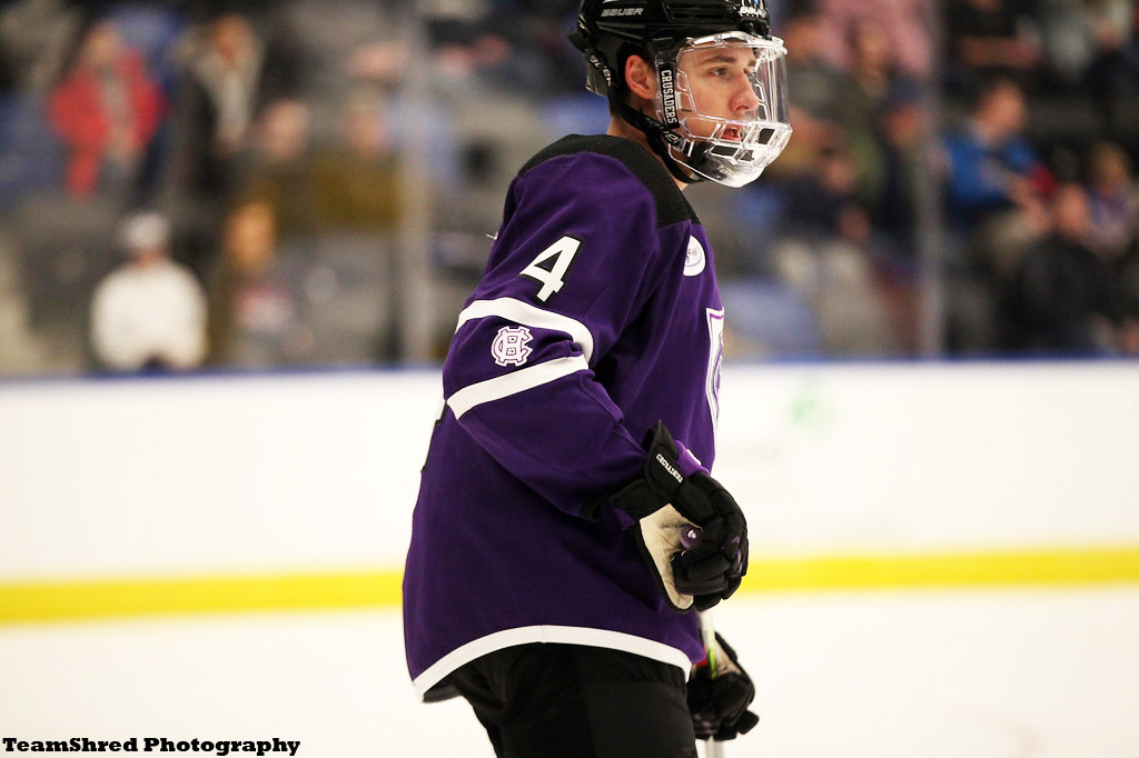 SPHL rookie defenseman Dalton Skelly(72) had himself a bit of a career season in his 1st outing scoring a new overall best 3 goals and tying his Holy Cross Crusaders‘ senior year high 13 points.