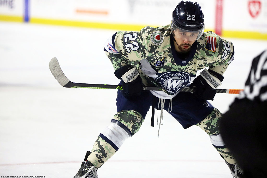 Right wing Ethan Price(22) re-signs with Worcester Railers, the team he joined after spending two years at Grant MacEwan University Griffins, but only played last season as team captain.