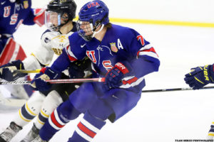 The 6’1″ 185 lbs. blue liner from Fairfield, CT looks to be a good shut-down blue liner that can also pick up points.