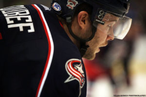 He only ever played one full season, 2015-2016, the 6th and final season with draft club (round 2, 2008, #37 overall) Columbus Blue Jackets, when he skated 43 NHL games, scoring a goal and best 7 assists and 8 points.