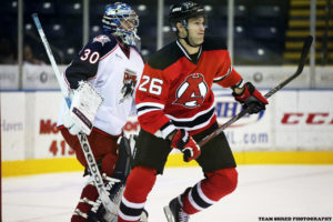 The New Jersey Devils‘ 2nd round pick in 2010 (#34 overall) spent 4 years until he was picked up by Vegas Golden Knights in their 1st season 2017 expansion draft.