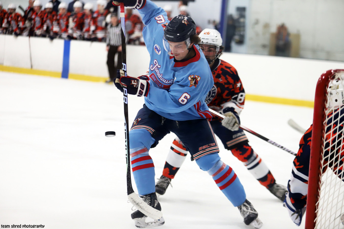 Johnstown Tomahawks‘ 1st year defenseman Justin Gibson(6) commits 2024/2025 to Stonehill College Skyhawks.