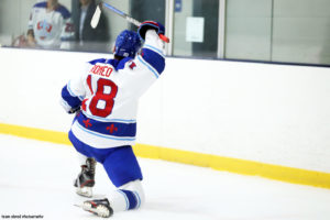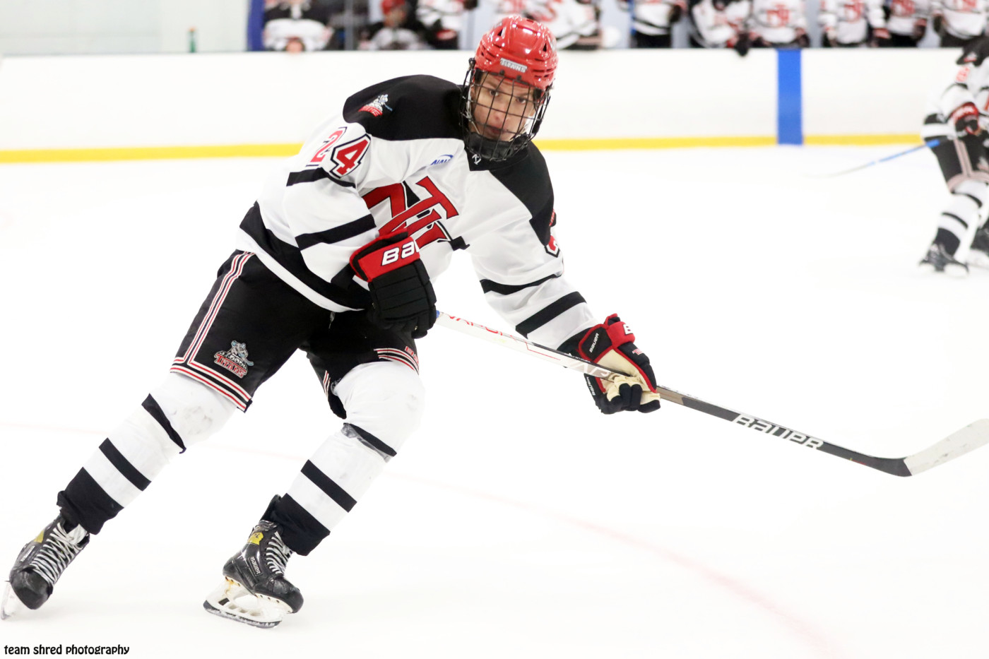 Assumption University Greyhounds‘ freshman left wing Jonathan Surrette(10) has a team leading 12 goals and 8 assists for 20 points in 14 games with a +12 rating.