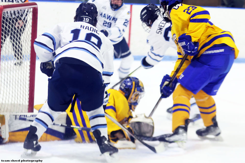1st year D3 hockey program, Roger Williams University Hawks‘ freshman right wing Aidan Radic(19) has maybe the best scoring percentage per games played currently on the team.
