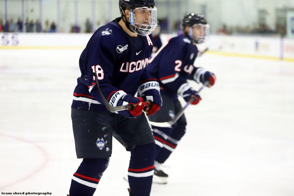 University Of Connecticut Huskies‘ graduate defensemen John Spetz(18) signs a 1st pro contract with Jacksonville Icemen for his rookie run, 2025/2026.