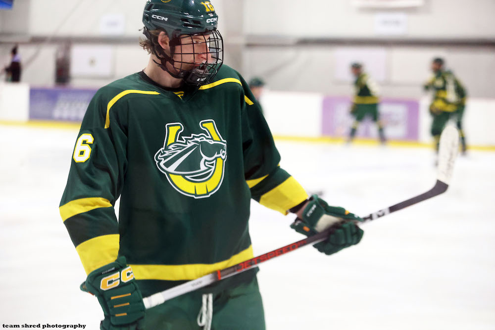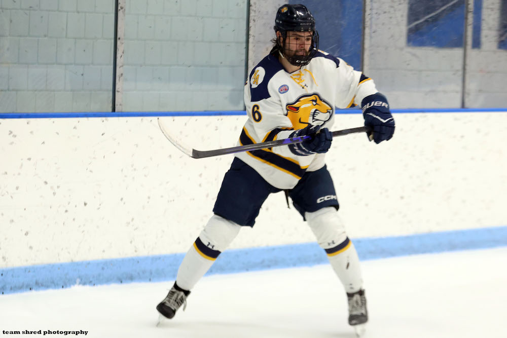 2nd year Merrimack College Warriors‘ graduate center Max Newton(10) looks to be on his way to blowing out any scoring he was able to managed at University Of Alaska-Fairbanks Nanooks having already pocketed 7 goals and 8 assists in 14 games with a +3 rating to start the 2021/2022 session.