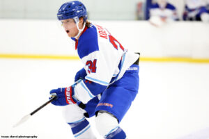 Maine Nordiques‘ 3rd year left wing Shane Kozlina(34) takes a junior best goals (16) and points (41) in 57 NAHL games with a +17 rating to a Colorado College Tigers‘ commit for 2025/2026.