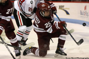 The 6’1″ 172 lbs. forward’s numbers at Hockey East don’t match up with what he was able to do in high school, then one BCHL season with Victoria Grizzlies, notching more than point-per-game numbers in the regular campaign, then playoffs.