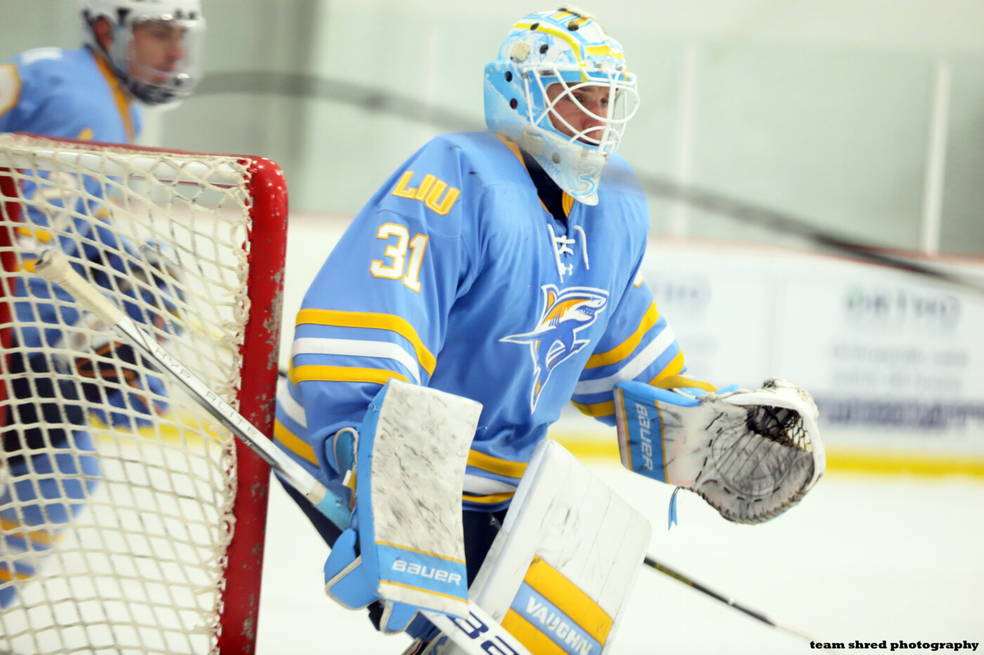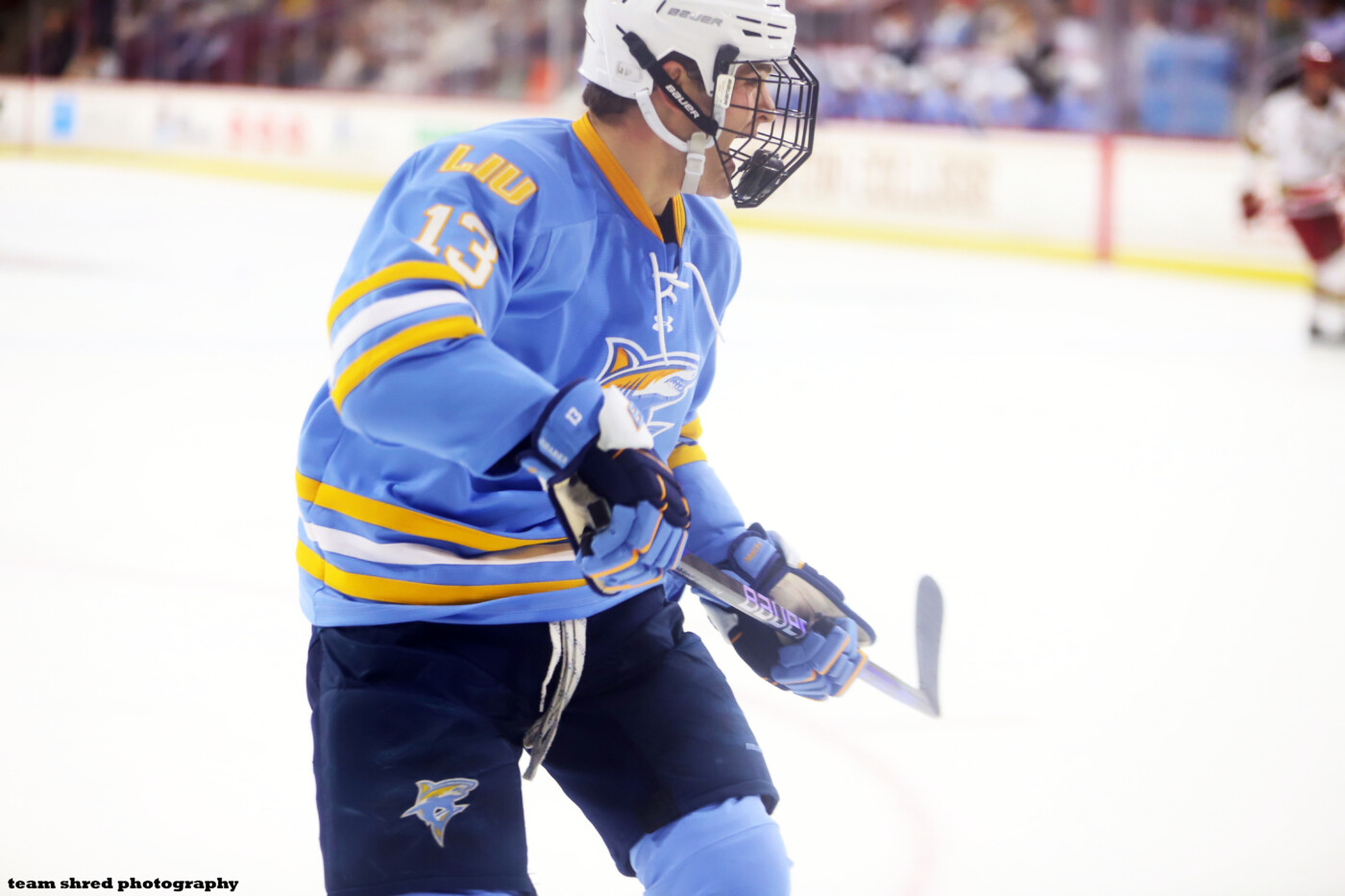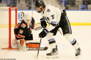 LIU Sharks‘ graduate center, captain Billy Jerry(26) is definitely putting himself on NHL scouts’ radar with his play for his new club this season after transferring from 4-years at RPI Engineers.