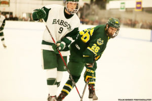 Babson College Beavers senior center Ryan Black(9) took home D3 NEHC MVP honors from the tournament his team was crowned 2022 Champions.