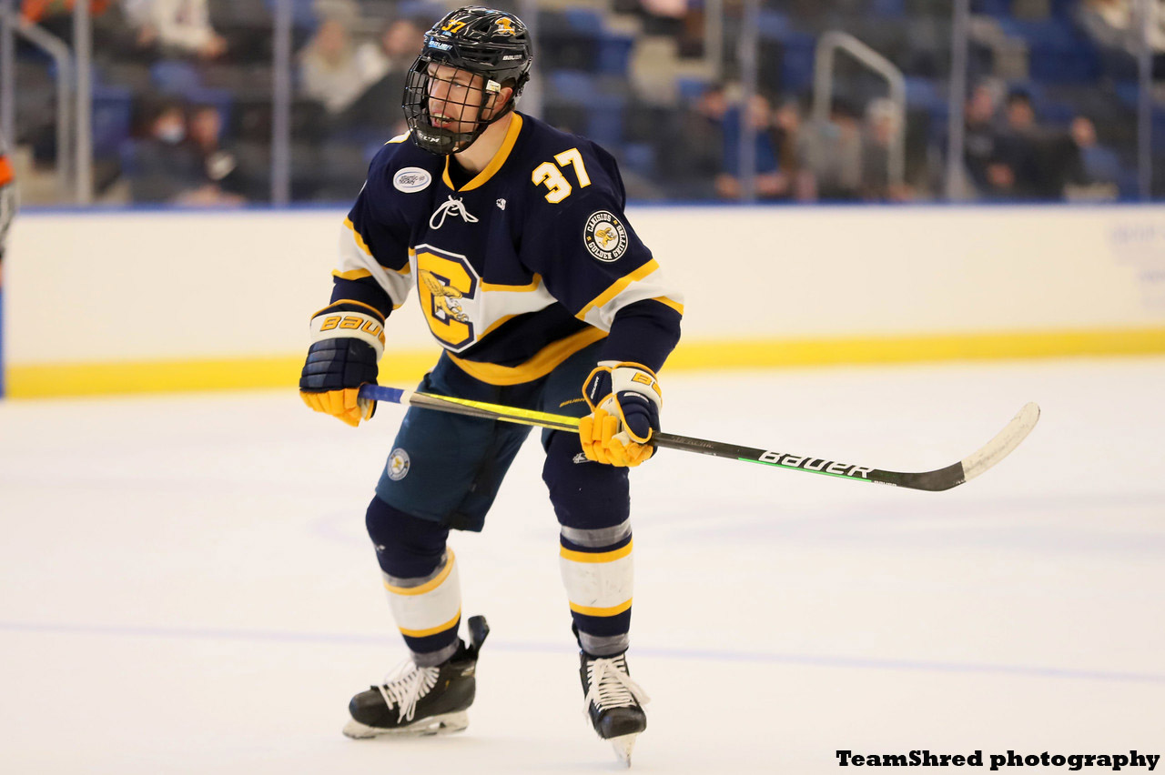 Canisius College Golden Griffins‘ graduate defenseman Cory Thomas(37) makes a good decision to enter the portal transfer for his year of eligibility coming in from 4 years at University Of Vermont Catamounts.