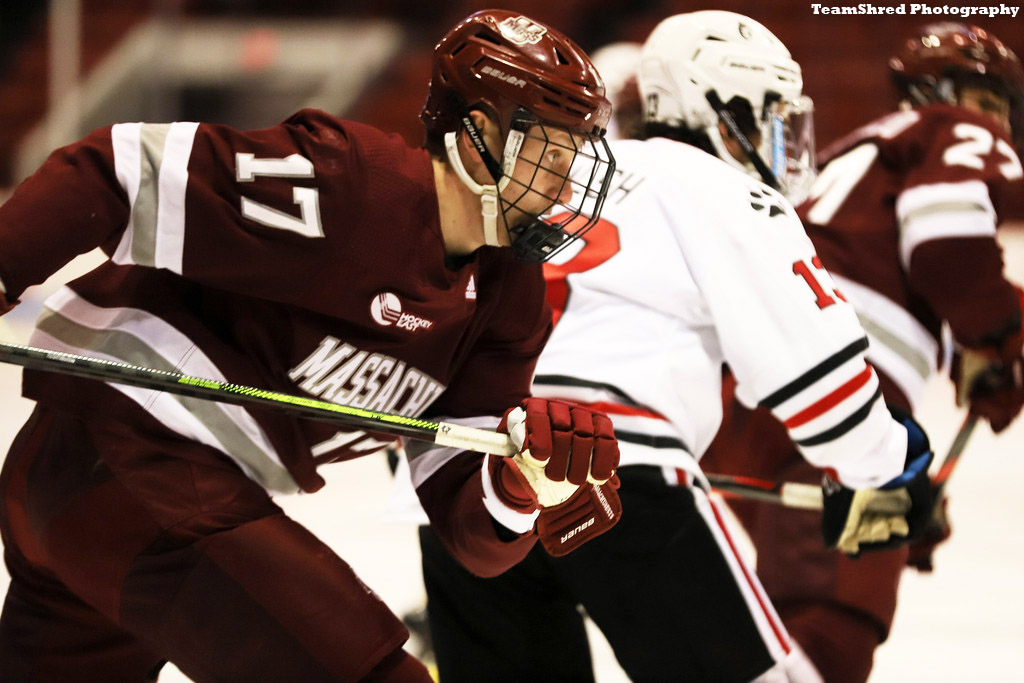 After winning an NCAA Division 1 Championship as a UMass Minutemen senior, undrafted center Philip Lagunov(17) will exercise another year of eligibility to head to a graduate program at University Of Vermont Catamounts.