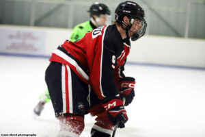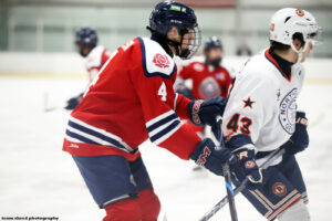 Seacoast Spartans‘ 1st year defenseman Jason Shafer(25) scored a junior best 4 goals and 14 assists in a new high 54 games that he will take to a Nazareth College Golden Flyers commit for 2025/2026.