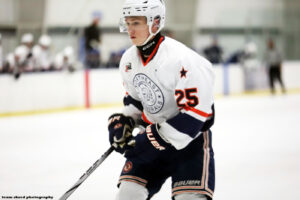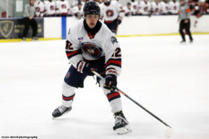 New Jersey Bears‘ 2nd year Ukranian-born left wing Artem Kondrashov(3) scored a junior best 13 goals and 23 assists last season and takes it to a 2025/2026 commit at Lebanon Valley College Dutchmen.