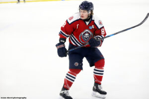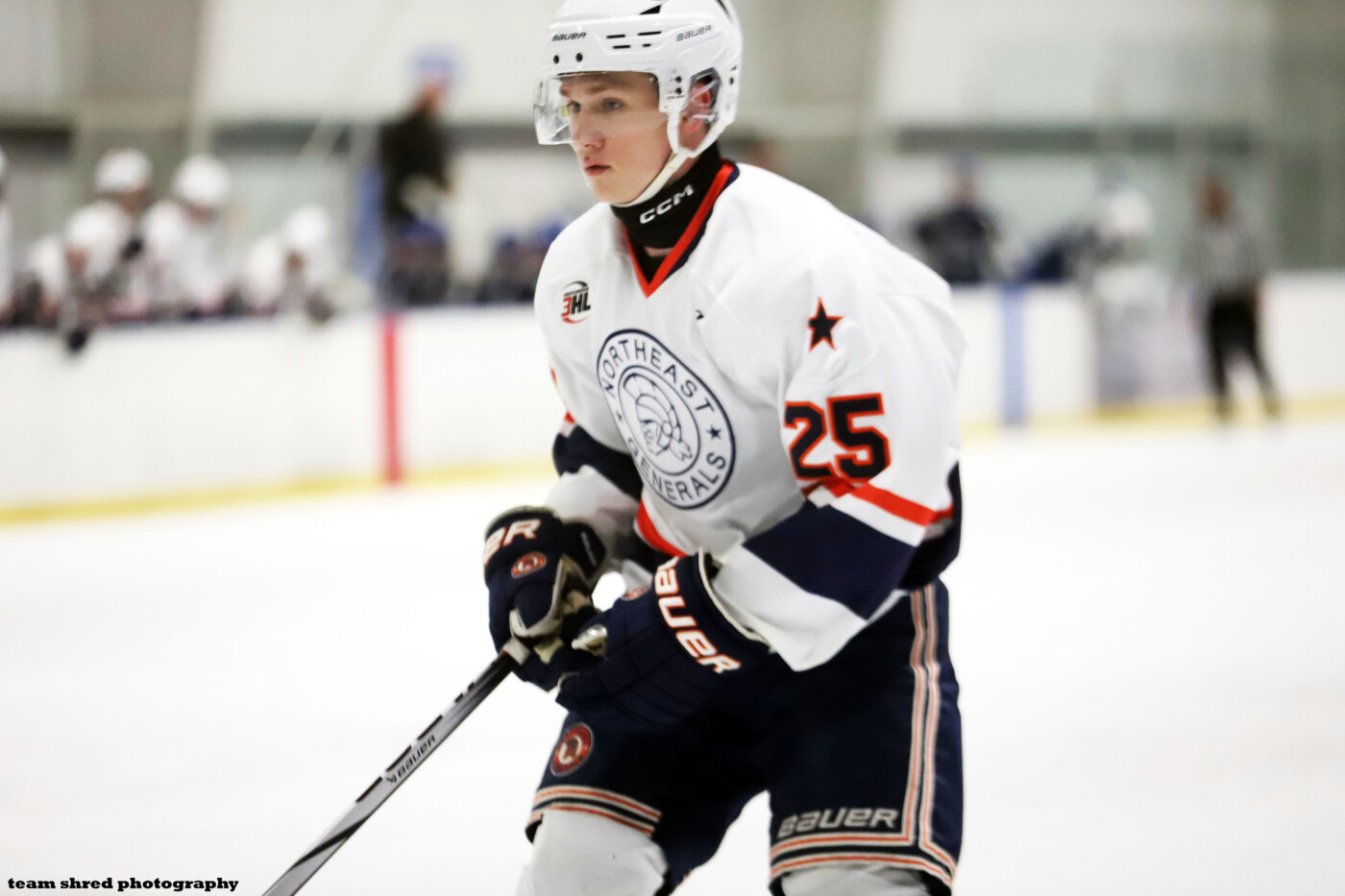 Norwich Sea Captains 2nd year left wing Chase Leivian(8) tied his 29 points he scored as an NA3HL 1st year player and commits to Franklin Pierce University Ravens for 2025/2026.