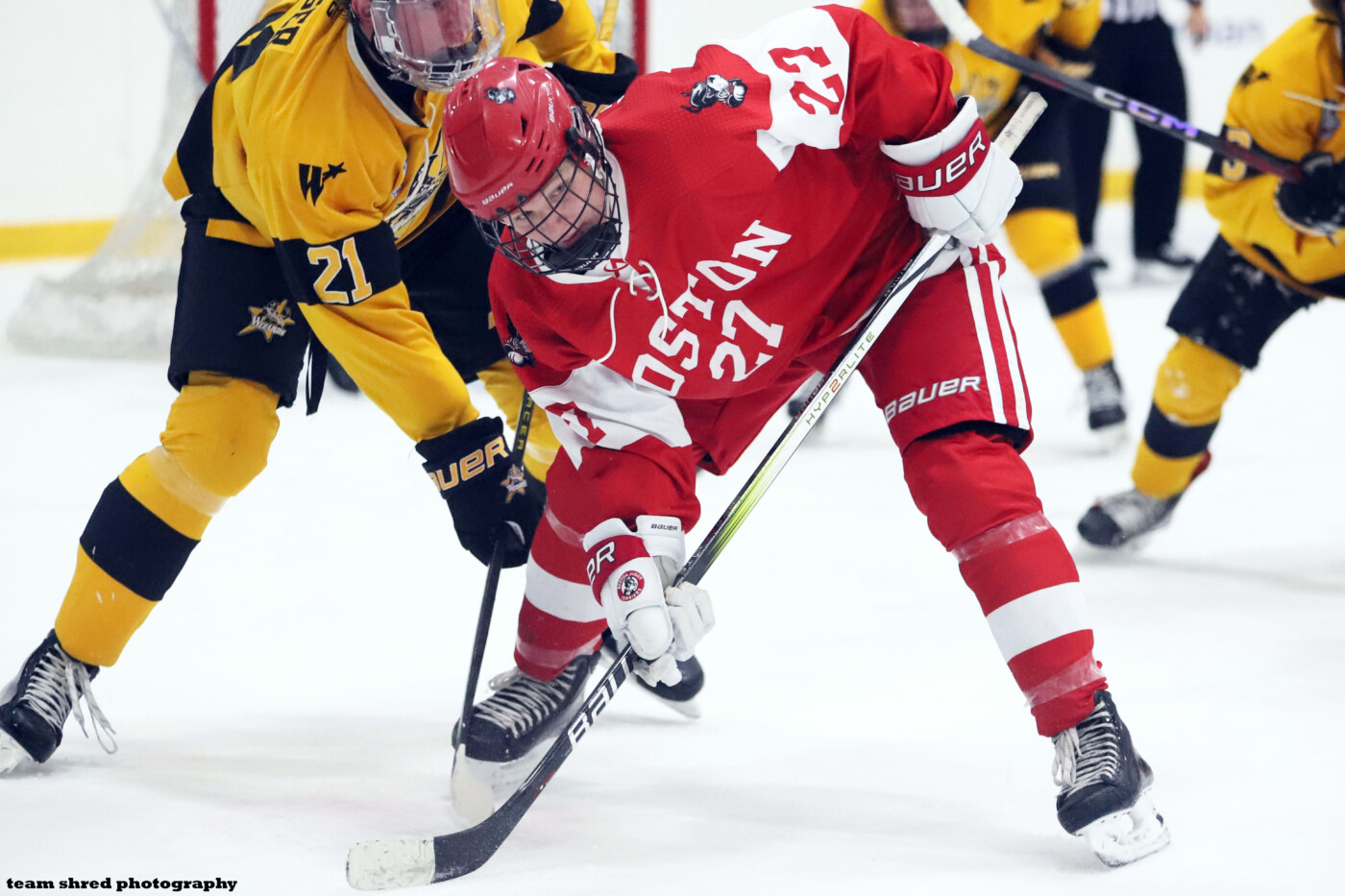 Boston Jr. Rangers‘ 1st year left wing Tyler Dale(82) takes junior best scoring 21 goals and 29 assists in 54 USPHL/NCDC games.
