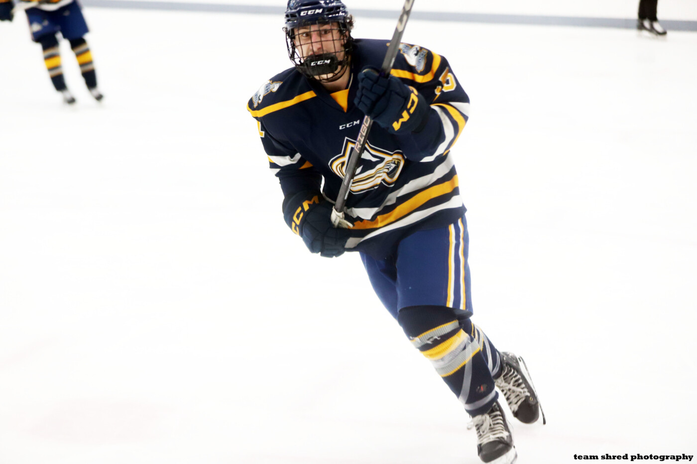 New Hampshire Avalanche 2nd year captain center Jake Hines(55) takes 11 goals and a monster 33 assists to a 2025/2026 commit at Wentworth Institute Of Technology Leopards.