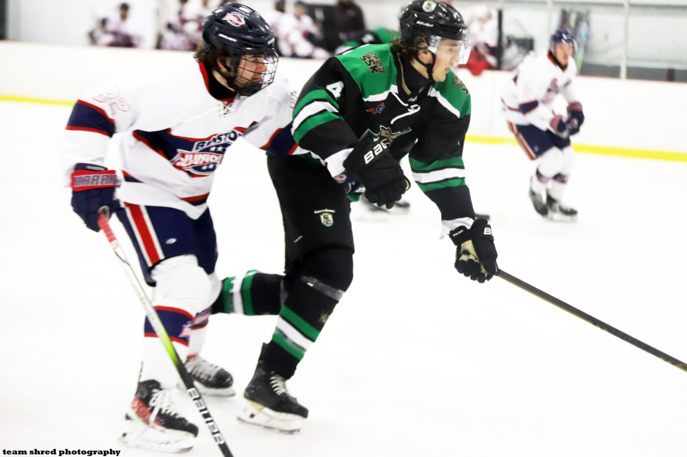 New Hampshire Mountain Kings‘ 2nd year defenseman Damon Bossie(18) had a growth year, scoring 9 goals and 30 assists in 54 games with a +10 rating.