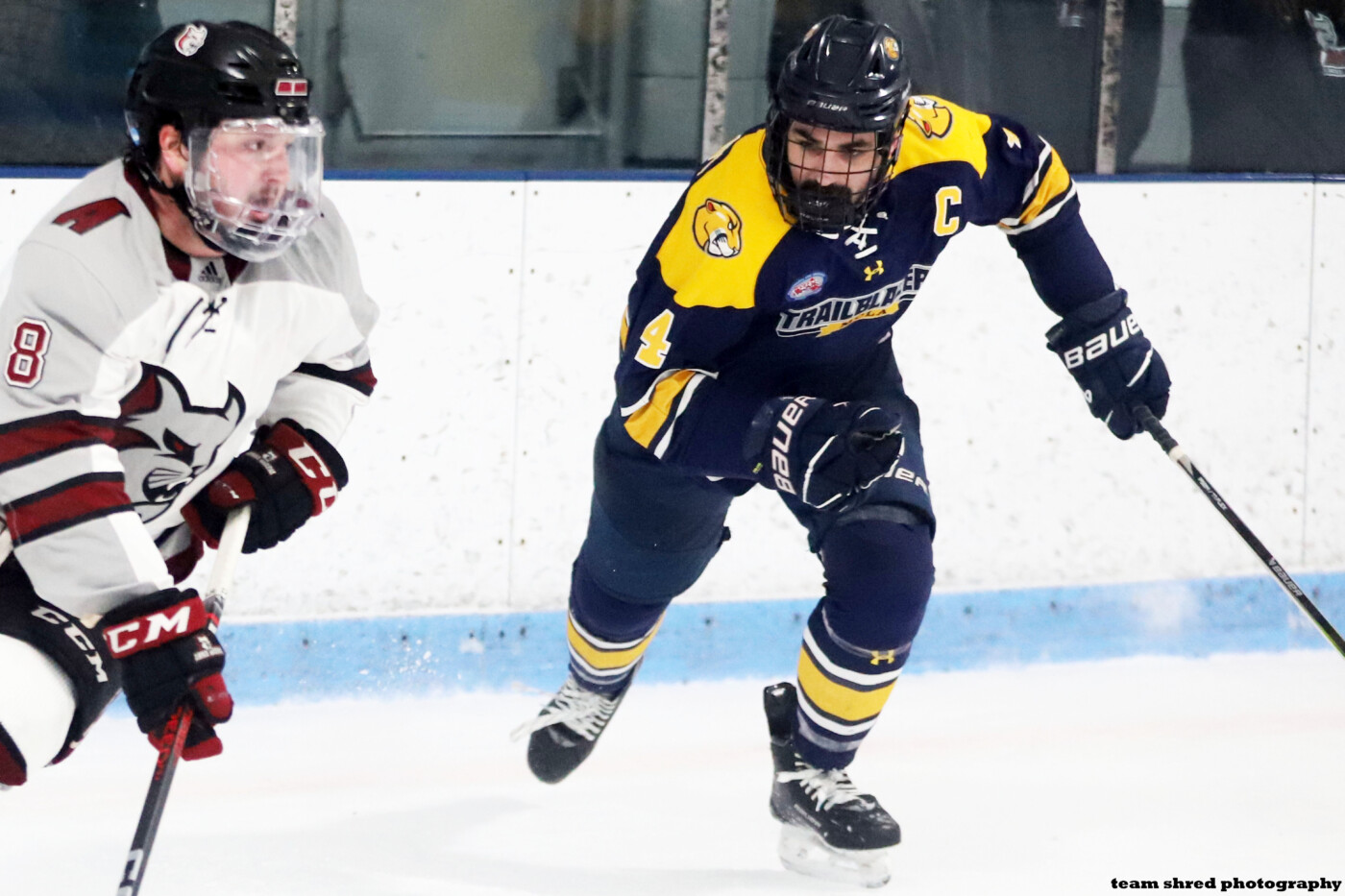 MCLA Trailblazers‘ junior defenseman, captain Connor Nagy(4) transferred after a freshman year at Finlandia University Lions.
