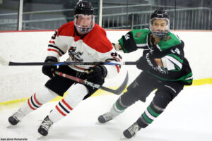 Boston Jr. Rangers‘ 1st year right wing Samuel Lyons(13) is heading to the school of his choice, his Green Bay residence, Milwaukee School Of Engineering Raiders to finish out the season and start his college life.