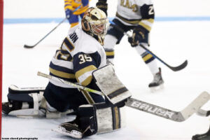 Suffolk University Rams‘ sophomore goaltender Chris Jackson(1) leaves after no appearances in his 2nd season, which we think was injury-based and shows up through the transfer portal at Albertus Magnus College Falcons as a junior, 2025/2026.