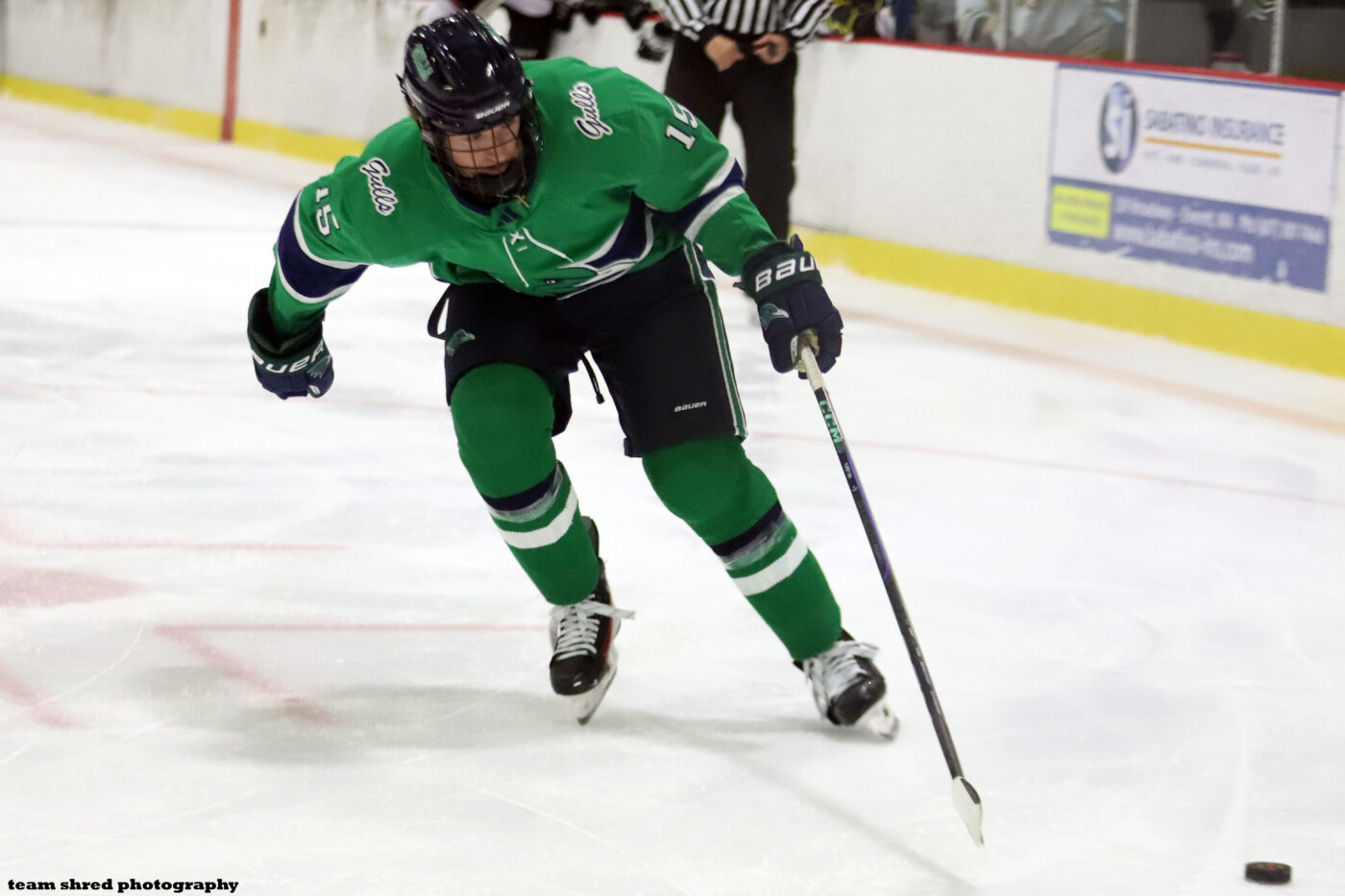 Valley Jr. Warriors‘ 1st year right wing Matthew McEnroe(9) scored 4 goals and 6 assists in 39 EHL games he takes to his 2025/2026 commit at Syracuse University Orange.