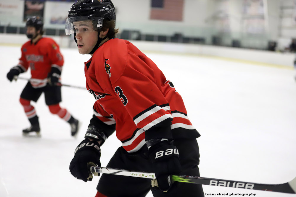Hiram College Terriers‘ senior left wing Shane Ward(48) is playing like he has something to prove out there, despite playing on the 1st year D3 team that is so young, it struggles to stay in games.