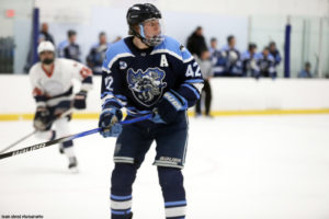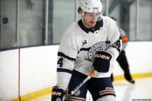 Plymouth State University Panthers‘ senior defenseman Brett Lockhart(18) signs a 1st pro contract with Port Huron Prowlers of the FPHL and has 1 goal in 5 games, and no points in 3 playoff games, as he wraps up his 1st foray into being a pro.