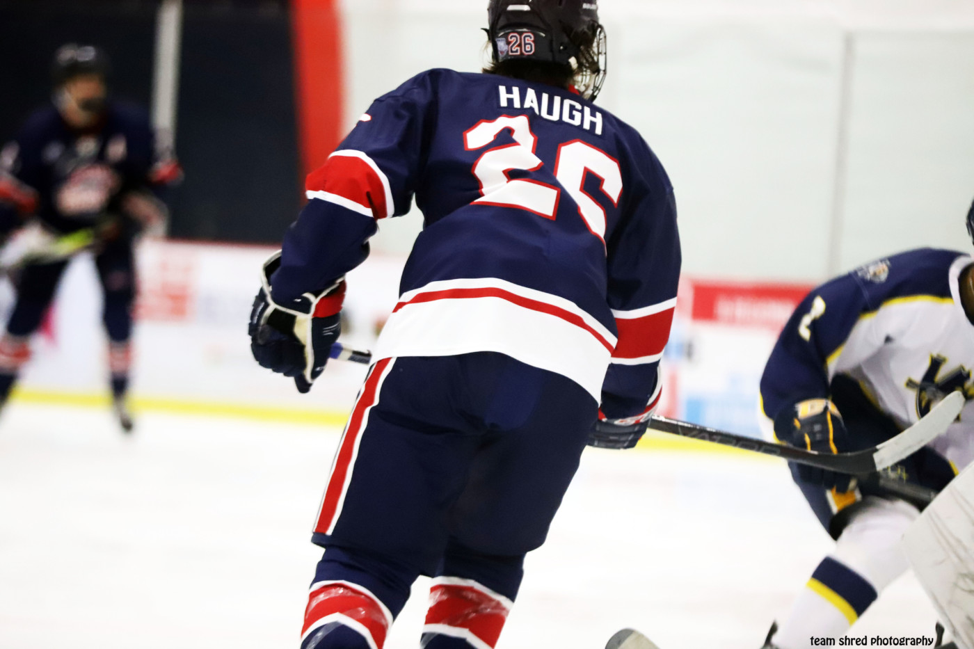 Boston Jr. Rangers‘ 2nd year defenseman Andrew Haugh(26) chooses SUNY-Brockport Golden Eagles to start his D3 hockey play and further his education.